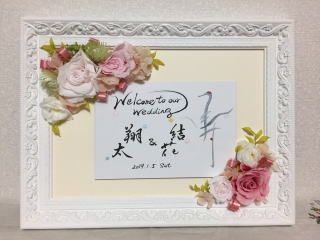 ボックスフレーム(立体額)にして命名書やお写真を立体にしたり…お部屋の雰囲気に合わせて、長く飾れるインテリアとしての命名書もお作りいたします。